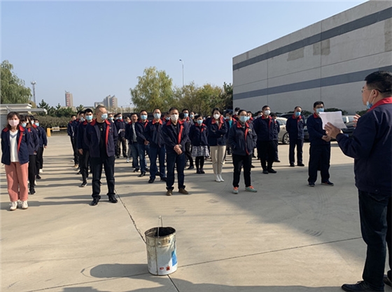 警報(bào)響起后,辦公樓和車(chē)間全體人員迅速撤離辦公區(qū)域,向安全區(qū)域集合,工作人員取出滅火器,帶到緊急疏散集合點(diǎn),進(jìn)行消防器材培訓(xùn)。