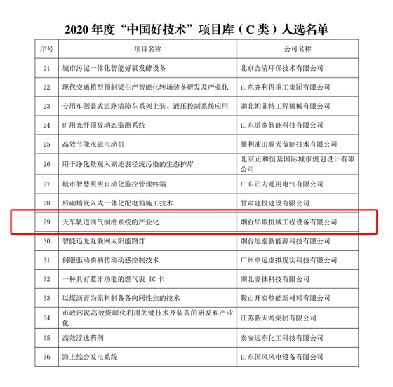 在全國各級生產(chǎn)力促進(jìn)中心和相關(guān)機(jī)構(gòu)的大力支持的2020年度“中國好技術(shù)”征集活動中,華順天車軌道油氣潤滑技術(shù)榮獲“中國好技術(shù)”稱號。